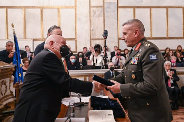 Κατά τον σύντομο χαιρετισμό του ο Αρχηγός ΓΕΕΘΑ ευχαρίστησε θερμά την Ακαδημία Αθηνών για την κορυφαία χειρονομία αναγνώρισης του έργου που επιτελεί το προσωπικό των τριών Κλάδων των Ενόπλων Δυνάμεων και των Ειδικών Δυνάμεων – Δυνάμεων Ειδικών Επιχειρήσεων, όλων εκείνων δηλαδή που όπως έλεγε ο αείμνηστος Πρόεδρος της Δημοκρατίας και πρώην Πρόεδρος της Ακαδημίας Αθηνών Κωνσταντίνος Τσάτσος «διάλεξαν να γίνουν φύλακες της ανεξαρτησίας και της ακεραιότητας της Ελλάδας, επειδή πιστεύουν σε αυτήν και στην απόλυτη αξία της ύπαρξής της».