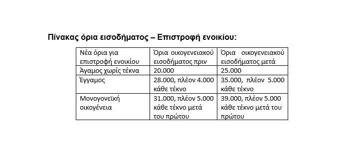 Την αύξηση των εισοδηματικών ορίων για την επιστροφή ενοικίου ανακοίνωσε – μεταξύ άλλων μέτρων – ο πρωθυπουργός Κυριάκος Μητσοτάκης, στο πλαίσιο του νέου πακέτου στήριξης για την άμβλυνση των πληθωριστικών πιέσεων εξαιτίας του πολέμου στο Ιράν.